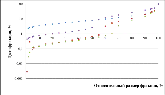 относительный размер фракции, %; А – поправочный коэффициент, характеризующий