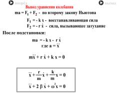 формулы гармонических колебаний в дифференциальном виде и их решение.