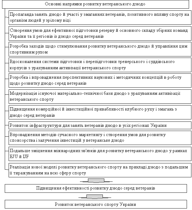 Основні напрями реалізації моделі розвитку ветеранського дзюдо в Україні наведені на рис. 2.