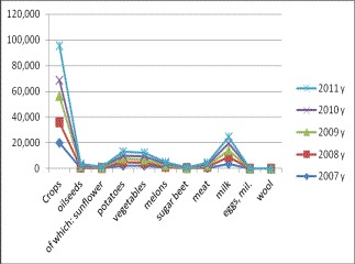 production of agricultural products (Table 1).