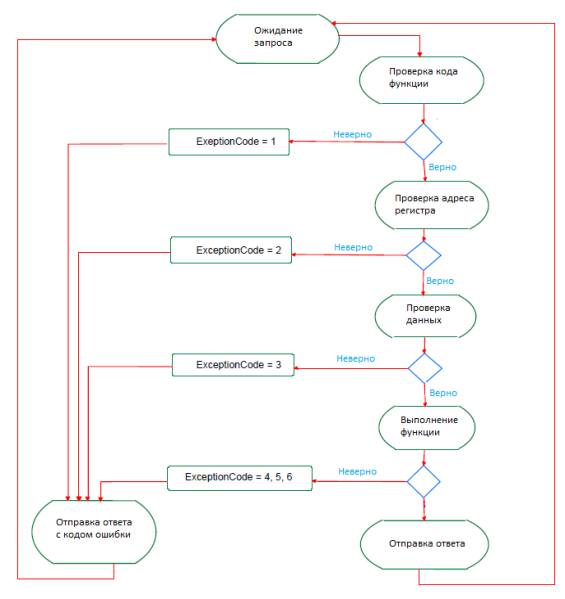запрос, так и действий подчиненного устройства в случае ошибок в отправляемом