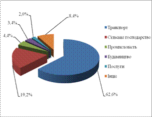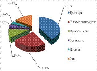 Як бачимо, найбільшу частину займає транспорт, потім сільське господарство.