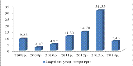 Рис. 2.7. Вартість укладених лізінгових угод протягом