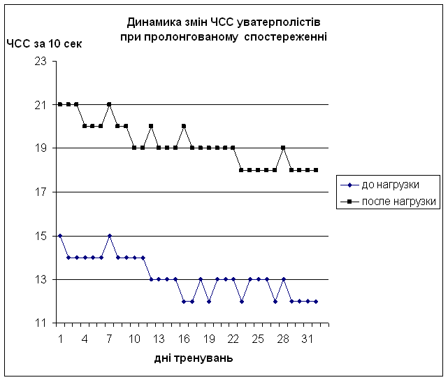 Малюнок 1. Зміна частоти серцевих скорочень ватерполістів при підвищенні