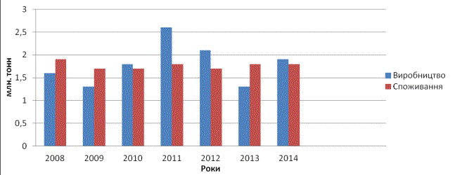 продукту сягала 2,1 млн т за потреби внутрішнього ринку близько 1,7-1,8 млн т.