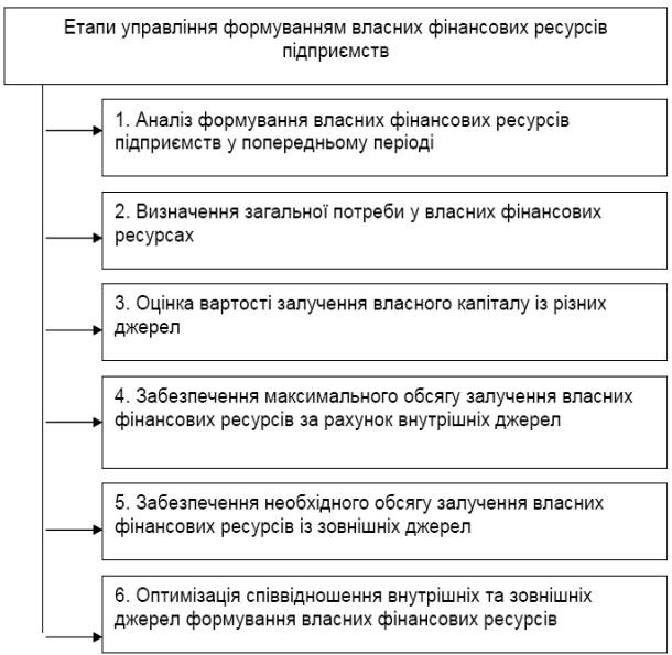 власних фінансових ресурсів підприємств здійснюється за етапами на рис. 1.