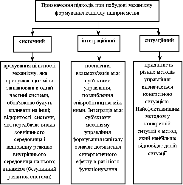Рис. 1. Характеристика підходів до побудови механізму формування капіталу