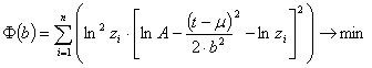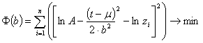 чином описує початкові дані (4), скористаємося методом найменших квадратів: