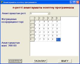 диалогты терезесі 4-сурет. Анықтауышты есептеу нәтижесі