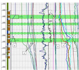 данным расходометрии в интервалах 2487,5-2488,5 м, 2494,8-2496,0 м, что