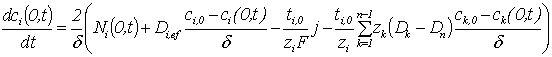 электроде. Модель базируется на интеграле уравнений массопереноса в допущении