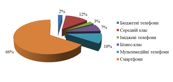 Рис.1 Популярність різних категорій мобільних телефонів серед покупців