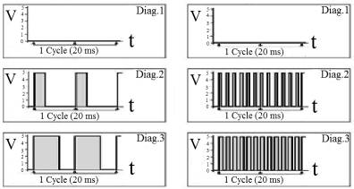 управління передається у вигляді імпульсів певної ширини кожні 20 мс (рис.2а).