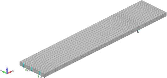 На рис. 4 зображено скінченно-елементну сітку, крайові умови та навантаження.