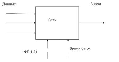 Рисунок 1. Структурная схема нейронной сети с дополнительными входами «Время суток» и «ФП».