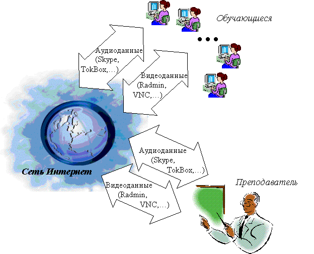 что было на мониторе у преподавателя. При этом преподаватель имел возможность вмешиваться в