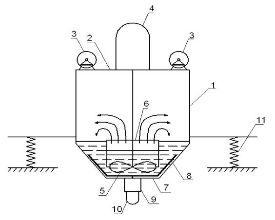 вертикальной осью, внутри которого со скоростью 6-8 м/с вращается ротор.