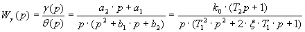 розмічувальної машини як об’єкта автоматичного керування напрямком руху, T1, T2 - постійні часу, ξ - коефіцієнт затухання.