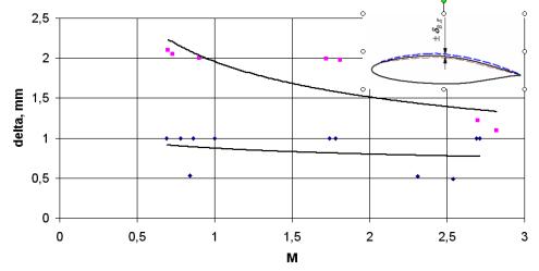 deviations on elements of aerodynamic surfaces are defined proceeding from