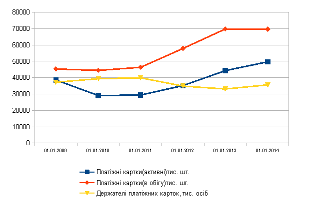 станом на 1 січня 2014 року кількість активних платіжних карток в обігу