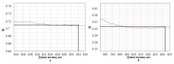 На длине волны 632 нм