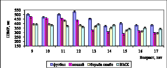 высокие значения данного показателя у представителей BMX-race. В возрасте 12-14