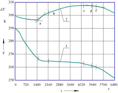 crystallization; b-c-d - further intensive crystallization of moisture; d-f –