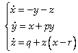 змінні x, y, z – динамічні параметри системи; p, q, r – значення статичних