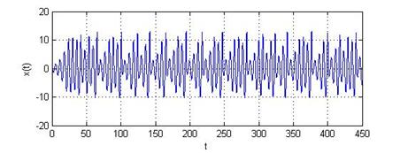 Рис. 2 - Часова залежність змінної х хаотичної системи Ресслера