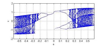 здійснювалось в програмному середовищі Matlab при різних значеннях параметрів системи a та