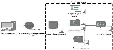 специализированные агенты: обучающий агент, агент связи, агент базы данных,