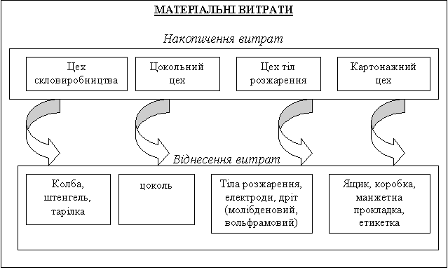 електролампової продукції пропорційно витрачанню сировини для їх виготовлення