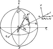 Рис. 1. Топоцентрическая горизонтная и сфероидическая (сферическая)
