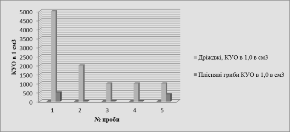 кількості дріжджів і пліснявих грибів у кефірі