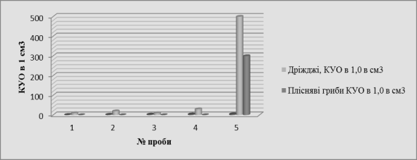 Кількість дріжджів та пліснявих грибів знайдених в йогурті