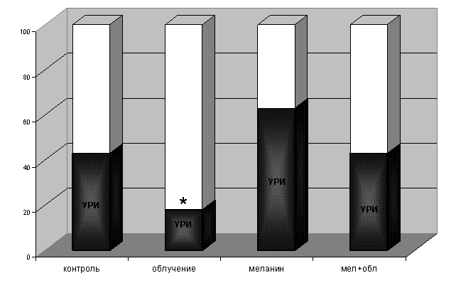 воздействия γ-облучения в дозе 125 сГр и меланина в дозе 10 мг/кг не