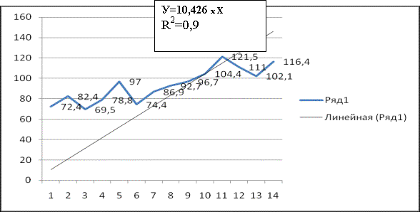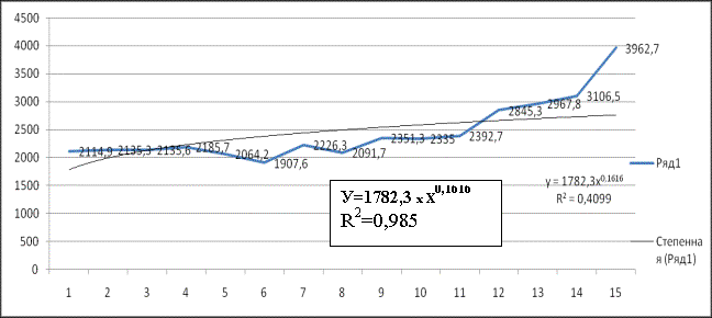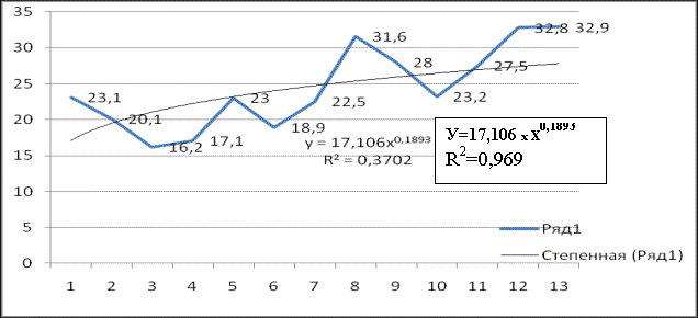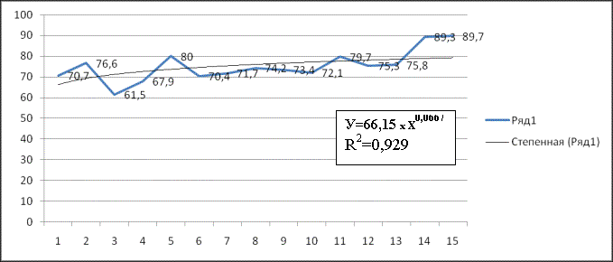 тенденцию, доверительный интервал составляет 0.9÷0.985. Вызывает интерес,