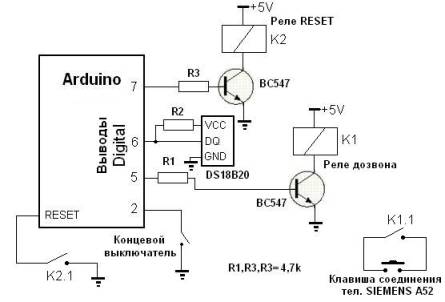 две минуты, выполняет дозвон и считывает показания температурного датчика. Сброс