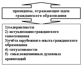 5) аспектность (каждый принцип представляет возможности развития гражданской позиции будущего учителя);