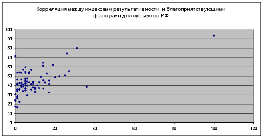 между индексами результативности и благоприятствующими факторами для субъектов