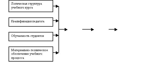 совокупности характеристик: обучаемость студентов; квалификация педагога; материально-техническое