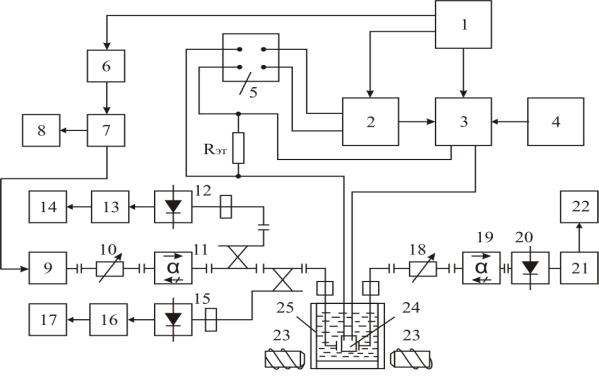 выхода магнетронного генератора подается через аттенюатор (10) и ферритовый