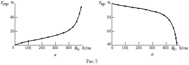 рис.4. Значения электрического поля, при котором наблюдается нелинейная