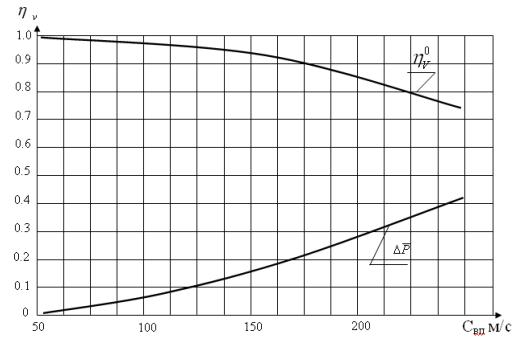 коэффициента наполнения и потерь насосных ходов от условной скорости впуска.
