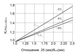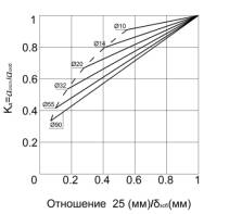 Рис. 2 Изменение коэффициента депланации бетона трещин в зависимости от диаметра арматуры.