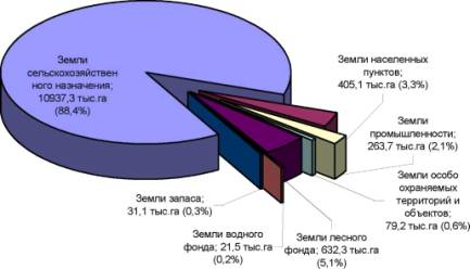 земель сельскохозяйственного назначения, на долю которых приходится 88,4%, а также