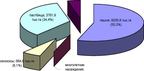 сенокосы, пастбища, многолетние насаждения), их площадь составляет 10473 тыс.
