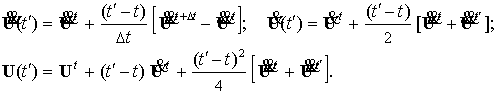 любой момент времени в пределах текущего шага Δt значения перемещений, скоростей и ускорений рассчитываются по