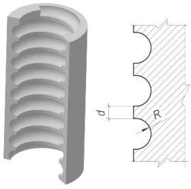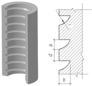 Рис 4. Корпус с параболическим профилем рифлей. |