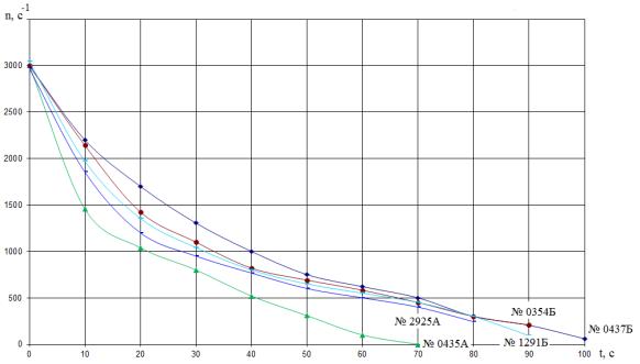 турбокомпрессоров были проведены исследования по свободному затормаживанию турбокомпрессора